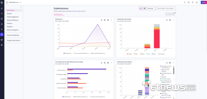 유넷시스템즈(대표 안기동)는 세계 최대 버그바운티 플랫폼 '해커원(HackerOne)'을 기반으로 기업·기관 취약점을 선제적으로 탐지하는 공격적 보안 서비스를 제공하고 있다고 밝혔다. 해커원은 240만명 이상 글로벌 화이트해커가 참여해 실시간으로 보안 취약점을 발굴하는 플랫폼으로, 다수 글로벌 ICT·금융 기업이 활용하고 있다.