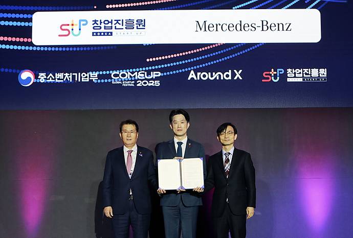 업무협약식에는 노용석 중소벤처기업부 1차관, 유종필 창업진흥원장, 김홍중 메르세데스-벤츠 코리아 대외협력부 상무 등이 참석해 민관 협력을 통한 스타트업 지원 확대의 의미를 공유했다.