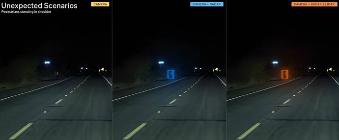 야간 주행 사례에서도 차이는 분명했다. 조명이 거의 없는 고속도로 가장자리에서 보행자가 이동하는 상황에서 카메라 기반 시스템은 차량 바로 앞에 이르러서야 인식했지만, 라이다를 포함한 시스템은 훨씬 이른 시점에서 보행자를 감지했다. 이는 자율주행 안전성 측면에서 치명적인 차이를 만들어낼 수 있는 요소다.