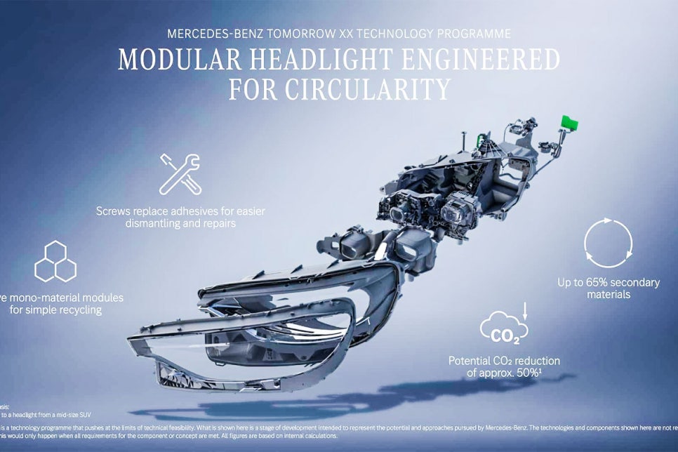 메르세데스는 차량 환경 영향이 주행 중 배출가스에만 국한되지 않는다고 강조한다. 원자재 채굴부터 생산, 수리, 폐기에 이르는 전 과정에서의 배출 저감이 중요하며, 수리 가능한 헤드램프는 그 출발점에 불과하다는 설명이다.