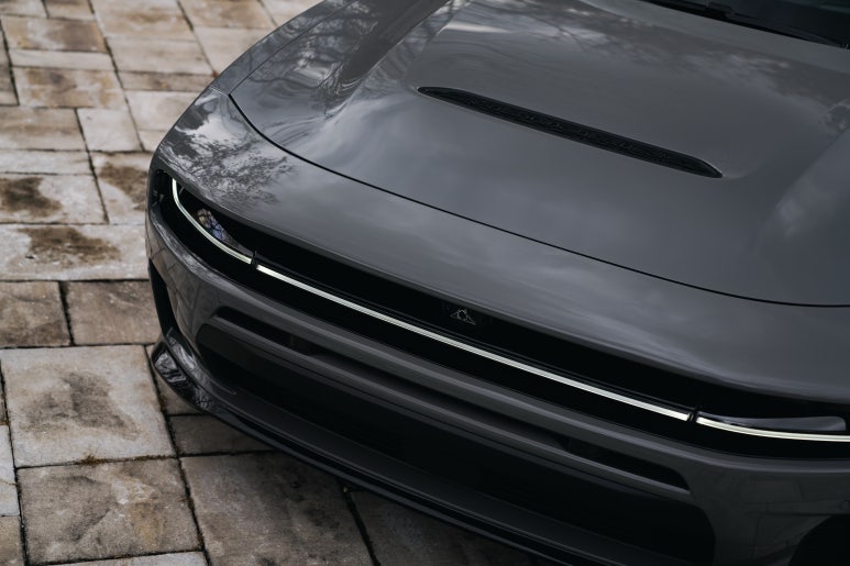 먼저 공개된 전기차 모델 '차저 데이토나'와 껍데기는 거의 비슷합니다. 하지만 자세히 보면 다릅니다. 전기차는 앞이 막혀있고 공기역학을 위한 'R-윙'이 달려있지만, 내연기관인 식스팩은 엔진 열을 식혀야 하죠. 그래서 범퍼 하단과 그릴 쪽에 진짜 공기 흡입구(Air Intake)가 뚫려 있습니다.