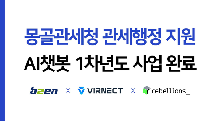 인공지능(AI)·빅데이터 전문기업 비투엔(대표 이창현·이정훈)은 정보통신산업진흥원(NIPA)이 추진한 '2025 AI-반도체 해외진출지원 사업'을 통해 '서버용 AI 반도체를 활용한 몽골 관세행정 업무지원 챗봇 및 증강검색 플랫폼 서비스 실증'의 1차년도 사업을 성공적으로 마쳤다고 23일 밝혔다. 사업은 내년까지 2년간 단계적으로 추진된다.