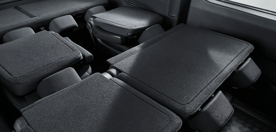 스타리아 실내는 전체적으로 수평 레이아웃을 적용해 안정감과 편의성을 중점으로 설계되었습니다. 특히 무난하게 사용할 수 있는 스타리아 하이브리드 투어러 같은 경우 9인승에서는 2열 3열 슬라이딩 및 풀 플랫 시트 및 3열 폴딩 시트 통해 탑승 인원에 따라 보다 여유롭게 실용적으로 사용할 수 있죠. 11인승 마찬가지로 2열 4열 모두 롱 슬라이딩 시트 및 풀 플랫을 지원하고 경우에 따라 4열은 폴딩 해 적재공간으로 활용하셔도 되죠.