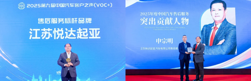 26일 장쑤위에다기아(이하 기아)에 따르면 기아는 최근 베이징에서 열린 '2025 제9회 중국 자동차 고객의 소리(VOC+) 세미나 및 시상식'에서 '2025년도 중국 자동차 애프터서비스 벤치마킹 브랜드' 상을 수상했다. 이와 함께 신종밍(申宗明) 장쑤위에다기아 서비스 부문 총괄(부장)이 'AS 서비스 공헌 인물'로 선정되며 브랜드와 개인 부문 모두에서 성과를 냈다.