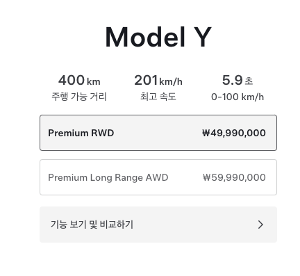 모델 Y 프리미엄 롱레인지 AWD \59,990,000원