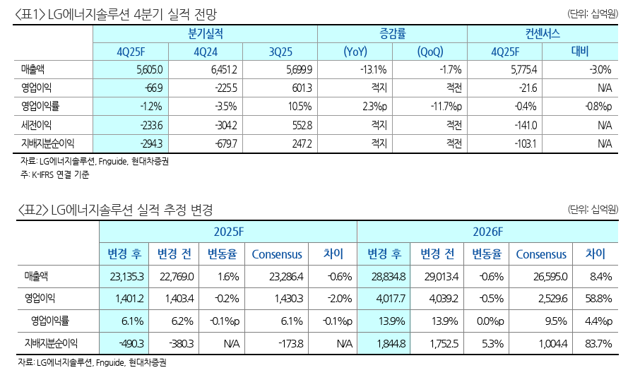 현대차證 "LG엔솔, Ford·FBPS 계약 해지로 2027년 실적 하향 요인 발생…목표주가↓"