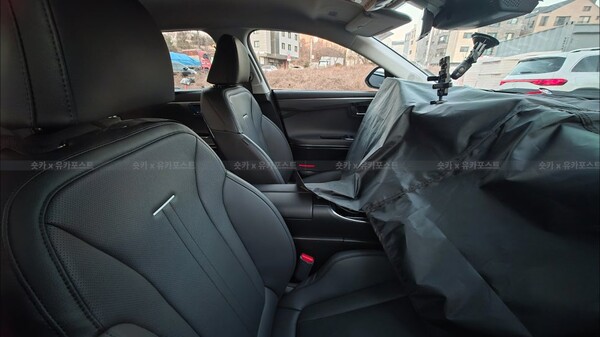 실내는 사실상 풀체인지에 가까운 변화가 예고됩니다. 그랜저에는 '플레오스' 시스템이 적용되며, 이를 위한 대형 디스플레이가 센터를 차지합니다. 대시보드 구조 변경에 따라 클러스터 역시 직사각형 형태로 새롭게 구성됐습니다. 헤드업 디스플레이 적용 여부에 따라 클러스터 위치가 달라지는 점도 특징입니다. HUD 적용 모델은 운전자 쪽으로 클러스터를 당겨 정보 전달성을 높였고, 미적용 모델은 전면부 쪽에 배치됩니다.