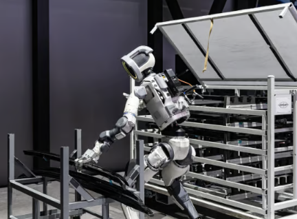 아틀라스 프로토타입: 360도 회전 관절로 자연스러운 움직임을 보여주며, 이미 현대차 메타 플랜트 아메리카(HMGMA) 공장에서 부품 정렬 테스트를 마쳤습니다.