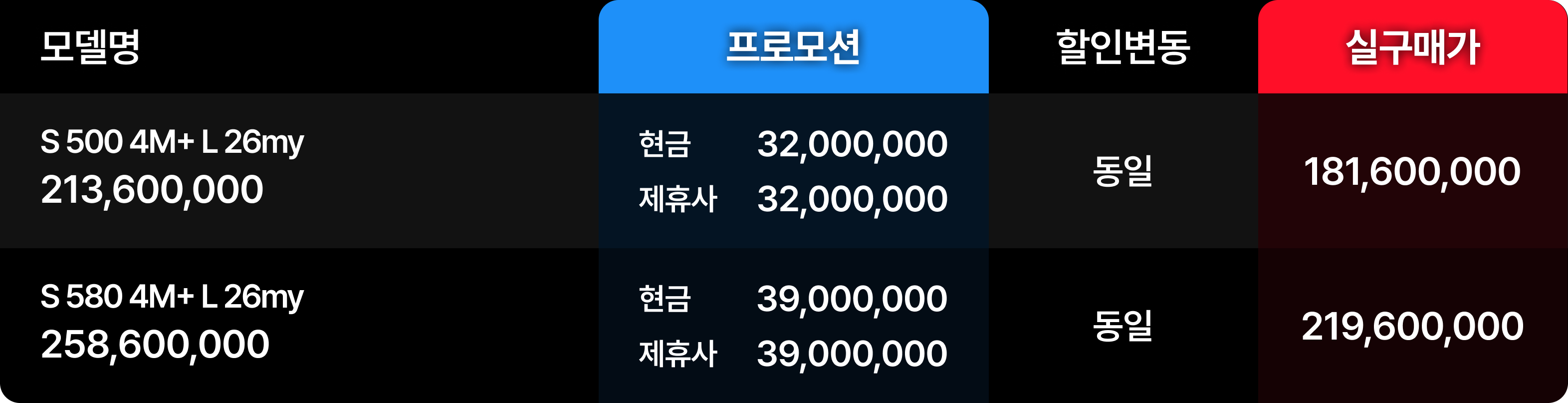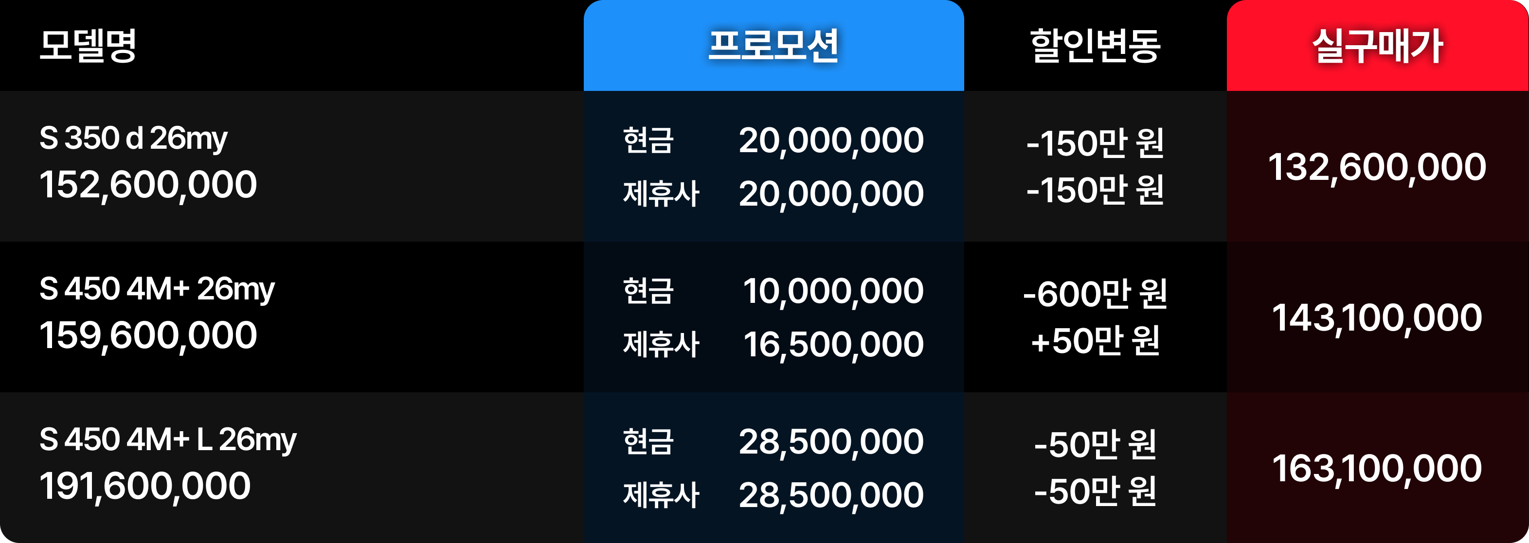 2026 벤츠 S클래스 1월 프로모션 할인 내용 (S350d & S580 & S450)