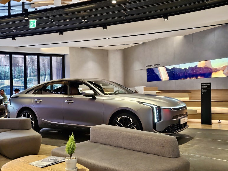 가장 먼저 눈에 띈 건 페이스리프트 된 K8입니다. 파격적인 디자인 변화를 시도했지만, 그랜저의 아성 때문인지 요즘 고객들에게 조금은 외면받고 있는 것 같아 아쉬운 모델이죠. 실물로 보면 꽤나 미래지향적인데 말입니다.