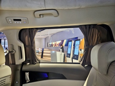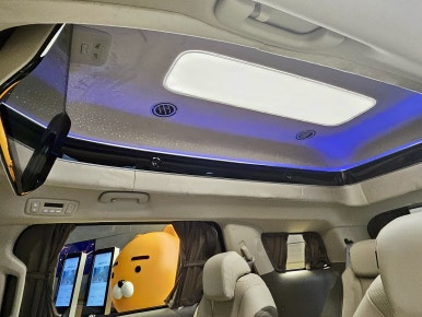 1열 시트 뒤쪽에는 공기청정기 컨트롤러가 빌트인 되어 있고, 창문에는 주름식 사이드 커튼이 장착되어 있습니다. 확실히 이런 마감 상태나 조립 품질은 기아 순정답게 아주 훌륭하고 깔끔합니다.