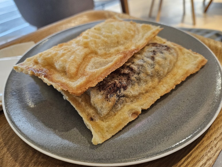 따뜻한 아메리카노와 함께 한 입 베어 무니, 겉은 바삭하고 속은 촉촉합니다. 팥과 슈크림도 꼬리 끝까지 꽉 차 있어서 기대 이상으로 맛있게 먹었습니다.
