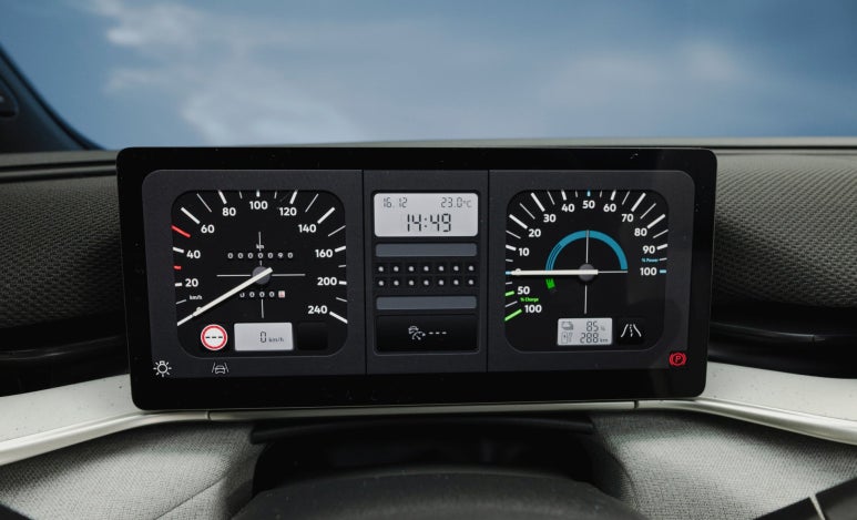 골프 1세대 오마주: 버튼 하나만 누르면 최첨단 디지털 계기판이 1980년대 오리지널 '골프(Golf) 1세대'의 계기판 디자인으로 바뀝니다.
