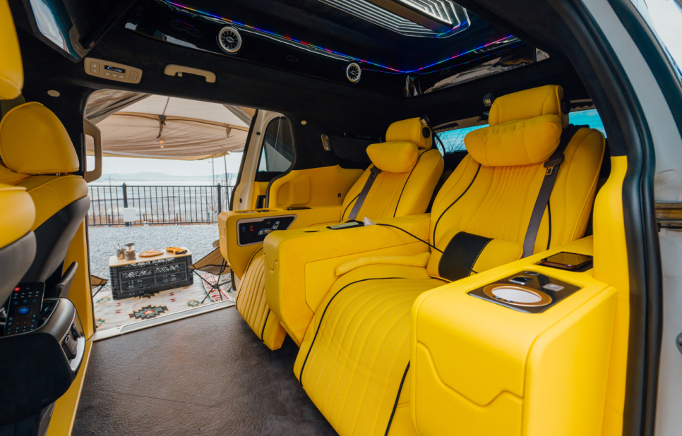 CN모터스 카니발 하이리무진은 같은 카니발 하이리무진이라도 차별화된 모습을 제공합니다. 그 이유는 바로 인디비주얼 오더를 제공하고 있기 때문이죠. 다양한 컬러와 시트 패턴의 조합은 무려 100가지 인테리어를 구사할 수 있는데요. 시트 디자인부터 손잡이 트리밍, 고급스러운 우드 및 대리석 바닥 내장재, 은은한 조명의 천정 조명까지. 캠핑장 분위기를 한껏 더 살릴 수 있습니다.