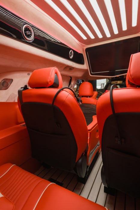 CN모터스 카니발 하이리무진의 큰 장점은 높은 개인화를 지원하고 있다는 점인데요. 다양한 시트 컬러와 시트 패턴 등 100가지 조합의 인테리어를 꾸며볼 수 있는 1:1 인디비주얼 오더를 통해 고객 니즈에 맞는 실내 분위기를 제공하고 있습니다. 여기에 더해 1열 T존 트리밍, 손잡이 트리밍, 러기지 트리밍, 바닥 대리석 및 우드 내장재, 천정 조명 등 바닥부터 천장까지 나만의 카니발 하이리무진을 완성할 수 있죠.