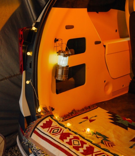 카니발 하이리무진에서 노을을 맞이하니 드디어 안락한 베이스캠프 느낌이 물씬 느껴졌어요. 여기에 더해 카니발 하이브리드 화사한 내부 인테리어와 텐트에 부착된 은은한 조명들이 더 감성적인 분위기를 선사했습니다. 지금 딱 이 분위기 때문에 캠핑을 한 번씩 다니는 이유이죠. 오늘은 특별히 카니발 하이리무진과 함께해 더 만족감이 높습니다.