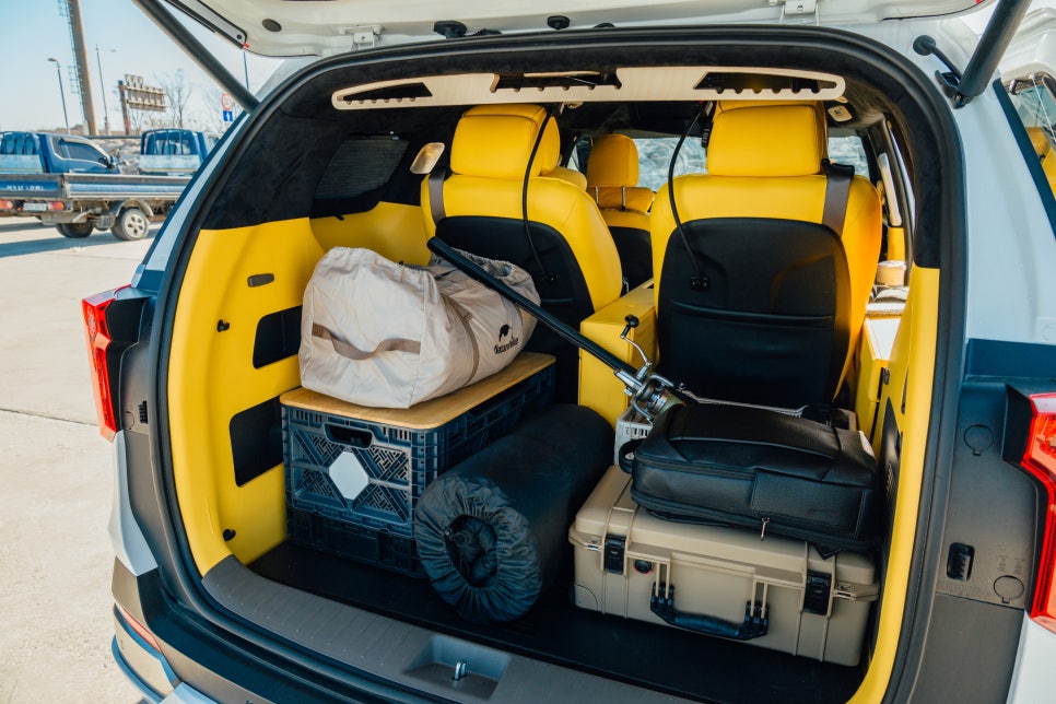 저도 아는 지인의 접대 캠핑을 당하고 나서부터 캠핑에 대한 호기심 생겼는데요. 처음에는 캠핑 장비 욕심 없이 테이블 하나와 캠핑용 의자 2개로 시작했었죠. 그러다가 이것저것 구매하다 보니 캠핑 용품들이 엄청 많아졌죠. 기존에 제 차량을 이용했다면 2열 폴딩까지 해서 힘들게 짐을 실었겠지만 카니발 하이리무진 캠핑카를 활용해 보니 생각보다 여유롭게 캠핑 용품들을 적재할 수 있었어요.