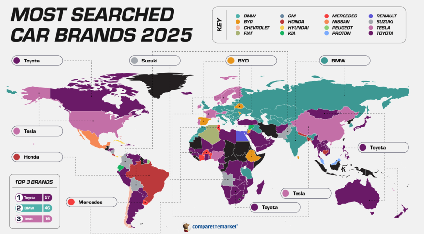 30일 호주 마케팅기업 컴페어 더 마켓(Compare the market)에 따르면 현대차는 지난해 구글에서 가장 많이 검색된 완성차 브랜드 8위를 기록했다. 2024년 6위에서 두 계단 내려앉았다. 검색 1위를 차지한 국가도 3개국에서 쿠바·파나마 2개국으로 줄었다.