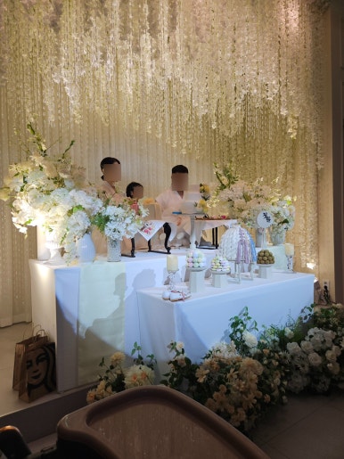 플라워카를 활용한 주인공 촬영부터 본식 진행까지, 모든 스태프분들이 숙련된 진행으로 자연스럽게 행사를 이끌어 주셨습니다. 덕분에 저희 부부는 진행 걱정 없이 아이와 손님들에게만 집중할 수 있었고, 아이의 첫 생일은 많은 축하 속에서 무사히 마무리되었습니다.