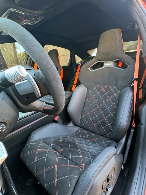 실내 변화는 더욱 상징적입니다. 기존 제네시스와 가장 크게 다른 지점은 레카로(Recaro) 버킷 시트입니다. 블랙 가죽과 알칸타라 조합에, 오렌지 컬러 백쉘과 대비 스티치가 적용돼 극적인 분위기를 연출합니다. 이는 지금까지 제네시스 실내에서 보기 어려줬던, 명확한 퍼포먼스 아이덴티티입니다.