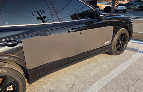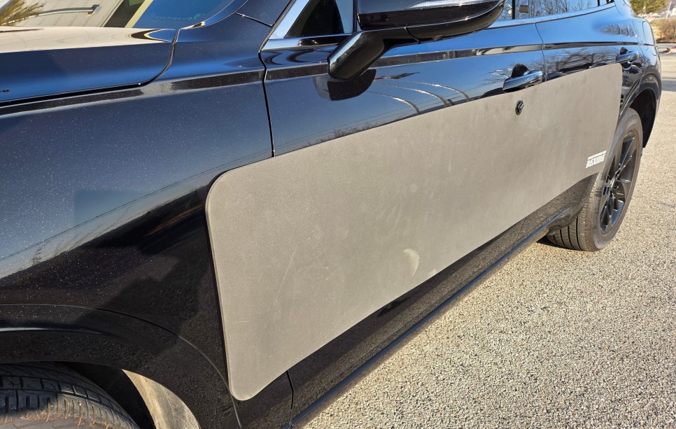 프리미엄 기준 가로 2,000mm* 세로 430mm 초대형 도어 가드 사이즈인데요. gv70 차량은 도어는 물론 휀더까지 닿일 정도로 면적이 넓죠 설치된 핏도 일체감 있게 은근히 잘 어울립니다. 이정도 사이즈면 확실히 묵콕 방지 역할을 톡톡히 할 수 있을 것 같죠. 퇴근하고 설치해놓으면 문콕에 대한 스트레스를 벗어날 수 있을 것 같아 벌써 기대가 됩니다.