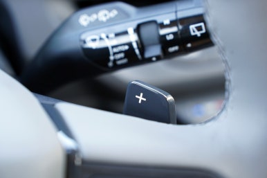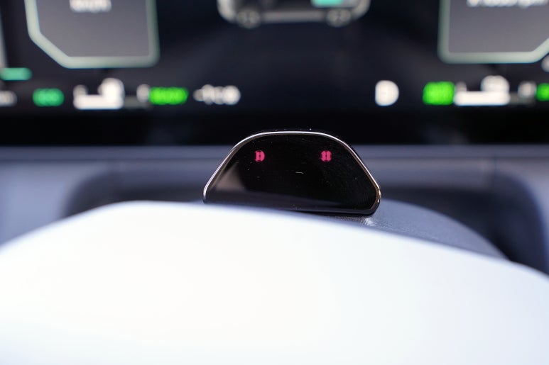 이번 모델에서 가장 논란이 될 만한 요소는 변속 레버와 시동 스위치의 통합형 디자인입니다. EV9에서 보았던 컬럼 타입 변속 레버가 적용되었는데 시동 버튼이 레버 끝부분에 위치해 있습니다. 기어 변속 자체는 조작 반경이 줄어들어 매우 편리해졌지만 시동 버튼의 위치는 직관성이 다소 떨어집니다.