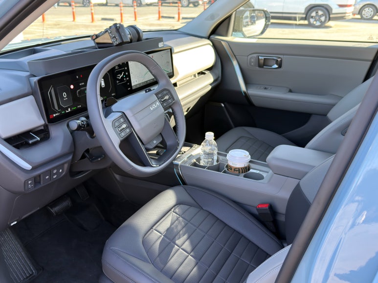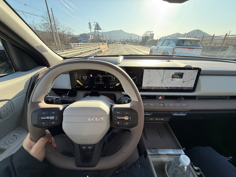 실내로 들어오면 기아가 최근 지향하는 디자인 철학이 곳곳에 묻어납니다. 전체적인 구성은 상급 모델인 EV9이나 EV3와 맥을 같이 하고 있습니다. 물론 차급의 한계로 인해 모든 소재가 고급 가죽으로 덮인 것은 아니지만 시각적인 완성도는 충분히 세련되었습니다.