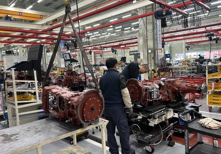 2공장에서는 대동그룹의 주력 제품인 트랙터의 파워트레인 조립이 이뤄진다. 1947년 경운기 제조사로 출발한 대동은 오늘날 100마력 이하 북미 트랙터 시장에서 8% 점유율로 3위 포지션을 차지하는 글로벌 기업을 성장했다. 2공장에 들어서자 구슬땀을 흘리며 작업에 몰두하고 있는 숙련공들이 눈길을 사로 잡았다. 한눈에 봐도 장인의 기운을 풍기는 근로자들이 차동 조합→ 브레이크 케이스→ 뒷차축 결합→ 도킹 등으로 이어지는 공정에 집중하고 있었다.