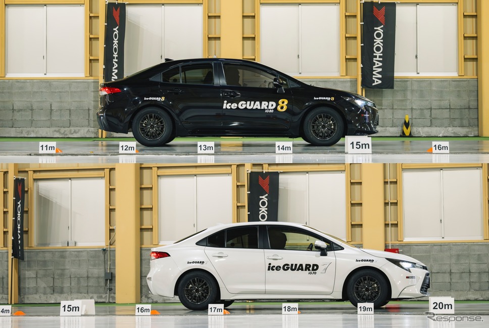 結果、新型アイスガード8と従来型のアイスガード7を比較すると、氷上性能で制動距離が14%短くなり、氷上旋回のラップタイムは13%向上したそうだ。氷上加速も13%向上している。