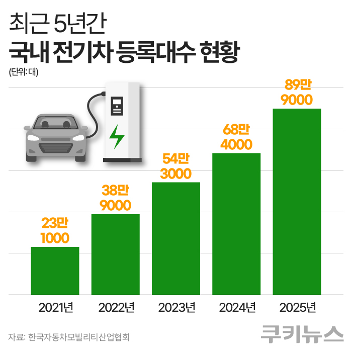 최근 5년간(2021~2025년) 전기차 등록 대수. 한지영 디자이너