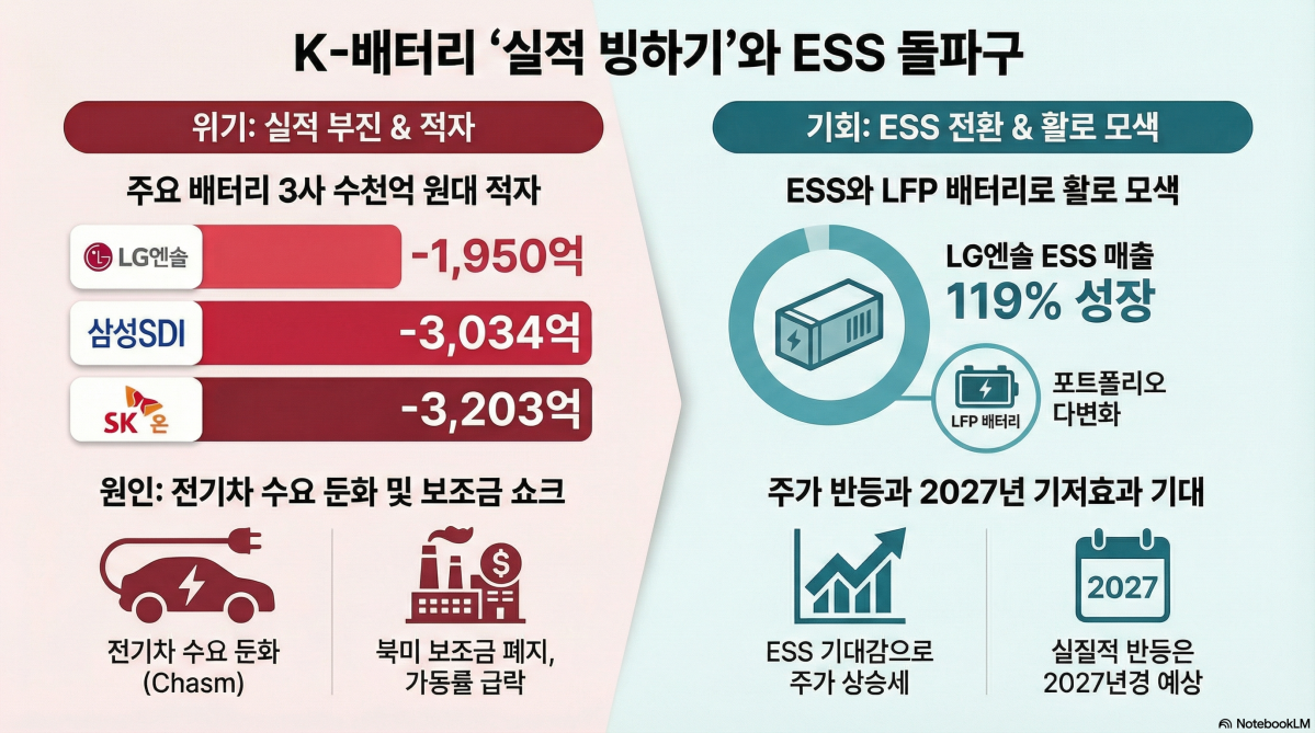 다만 전문가는 올해가 배터리 산업의 대외적 불확실성이 극대화되는 시기라고 진단했다. 박형우 SK증권 연구원은 "북미 EV 쇼크가 ESS의 고성장세로도 가려지지 않을 만큼 가파르다"며 "2027년 기저효과에 따른 반등이 예상되는 만큼, 기업들이 재무 안정성 확보와 기술 전환을 통해 긴 호흡으로 대응해야 하는 구간"이라고 평가했다.