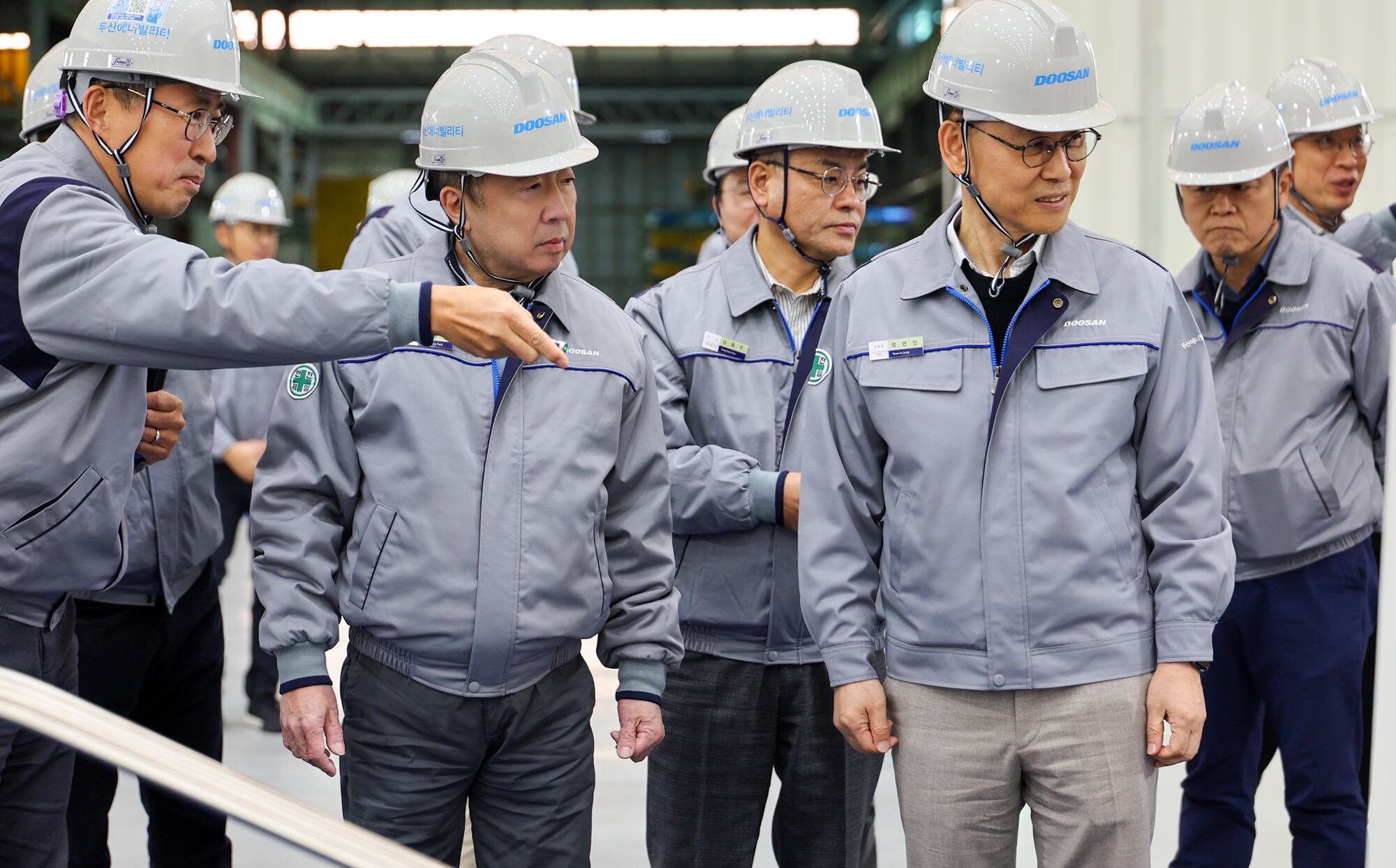 두산그룹은 박 회장이 11일 경남 창원 두산에너빌리티 사업장을 방문해 에너지 사업 현황을 점검했다고 12일 밝혔다. 최근 수주 소식이 이어진 발전용 가스터빈 공장과 소형모듈원전(SMR) 주기기 제작 라인을 집중적으로 살폈다.