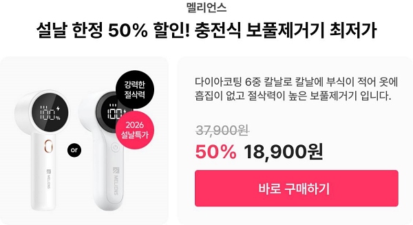 멜리언스 충전식 보풀제거기는 현재 설명절 특가로 50% 할인된 1만8900원이라는 파격적인 가격으로 판매되며, 무료 배송 혜택까지 제공하고 있다. 여기에 제품 결함 시 구입일로부터 1년간 무상 A/S 보증은 제품에 대한 멜리언스의 자신감을 엿볼 수 있는 대목이다.