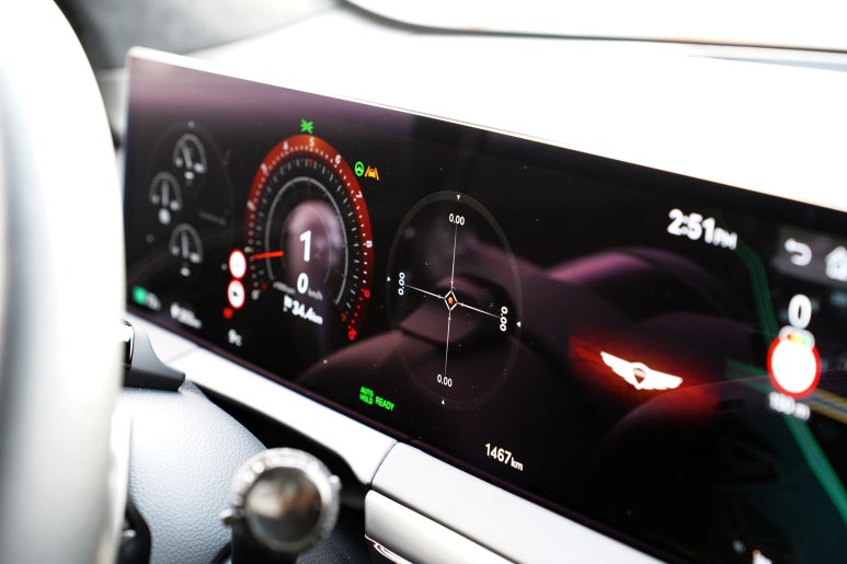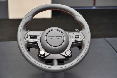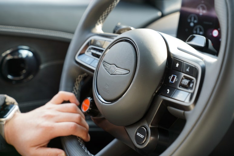 제네시스 브랜드 아이덴티티에 맞게 만들어진 스티어링 휠