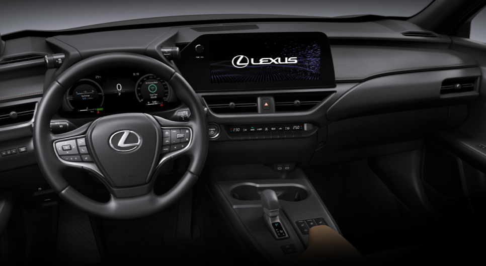 렉서스 UX 하이브리드 실내 인테리어는 어떻게 보면 올드해 보일 수 있지만, 군더더기 없는 깔끔함이 특징이죠. 3-스포크 타입의 원형 스티어링휠, 디지털 계기판, 12.3인치 인포테인먼트까지. 열선/통풍/EV 모드는 센터 콘솔쪽에 위치하고 있고 드라이브 모드 셀렉터는 핸들 앞쪽에 있죠. 이처럼 실내는 실용적이면서 간결한 모습을 갖추고 있습니다.