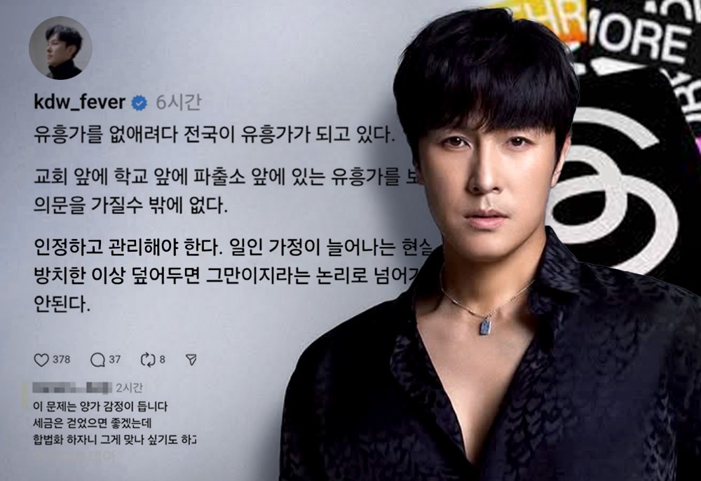 그룹 신화 멤버 김동완이 성매매 합법화를 찬성하는 의견을 밝혀 온라인을 중심으로 논란이 일고 있다. 김동완은 최근 자신의 소셜미디어(스레드)를 통해 "유흥가를 없애려다 전국이 유흥가가 되고 있다"며 "교회 앞에, 학교 앞에, 파출소 앞에 있는 유흥가를 보며 의문을 가질 수밖에 없다"고 밝혔다.이어 "(매춘을) 인정하고 관리해야 한다"며 "1인 가정이 늘어나는 현실을 방치한 이상 덮어두면 그만이라는 논리로 넘어가선 안 된다"고 주장했다.또 한 누리꾼이 "이 문제는 양가감정이 든다. 세금은 걷었으면 좋겠는데 합법화하자니 그게 맞나 싶기도 하다"는 댓글을 남기자, 김동완은 "합법화해야 한다고 보는 이유는 돈을 주지 않고는 못 하는 사람들도 있다"며 "질병 관리 차원에서도 그렇다"고 답했다. 공창제 도입을 통해 매춘 관리를 해야한다는 다른 누리꾼의 의견에 네 줄정도로 요약해 달라는 댓글을 달기도 했다. 해당 발언은 온라인 커뮤니티를 중심으로 빠르게 확산됐다. 이후 김동완은 자신의 스레드 계정을 폐쇄한 상태다. 캡처본은 온라인상에서 퍼지고 있다. 이정현 국힘 공관위원장 "벼랑 끝 국힘…판갈이 공천 할 것"[포토] 장동혁 '尹 무기징역 충분한 근거와 설명 없어...무죄추정의 원칙 적용해야'장민영 기업은행장 "생산적 금융 동력 삼아 중소기업 성장 뒷받침"“내란범에겐 사면 제한”…與, ‘사면 금지법’ 처리 예고李대통령 “불법 계엄 잔재 청산…국민의 군대로 거듭나자”