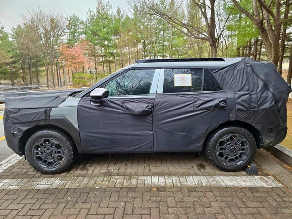 2027 투산 XRT 테스트카에서 가장 먼저 시선을 끄는 부분은 전반적인 차체 비례입니다. 기존 투싼이 곡선과 면의 대비를 강조한 '파라메트릭 다이내믹스' 디자인을 앞세웠다면, 차세대 모델은 확연히 각을 세운 박스형 실루엣으로 방향을 틀었습니다. 보닛은 한층 평평해졌고, 전면부는 보다 수직에 가까운 자세를 취하고 있습니다.