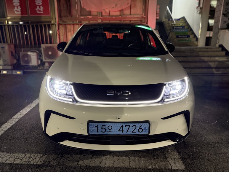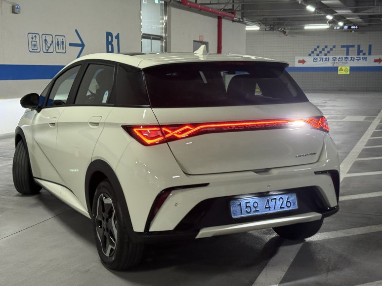드디어 시승차가 도착했습니다. 간혹 "후진등이 왜 한쪽만 나오나요?"라고 묻는 분들이 계시는데, 유럽 기준에 맞춰 제작된 차량들은 시인성 확보를 위해 한쪽만 배치되는 경우가 많습니다. 국내에 판매되는 BYD 돌핀 역시 중국 내수용이 아닌, 전 세계 동일한 사양으로 판매되는 글로벌 버전 모델입니