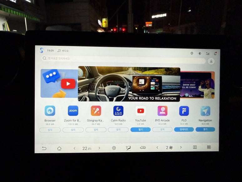 정차 중에는 노래방 기능을 즐기거나 유튜브를 시청할 수 있고, 웹 브라우저를 통해 다양한 OTT 서비스 이용도 가능해 보입니다.