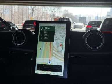 실내에서 가장 눈에 띄는 건 가로와 세로로 회전 가능한 인포테인먼트 디스플레이입니다. 기본 탑재된 TMAP은 물론 어라운드 뷰 화질도 상당히 선명해 시인성이 훌륭합니다.