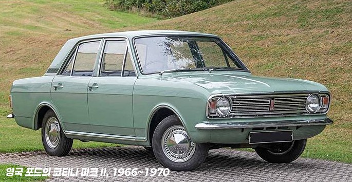 그로부터 다시 30년이 지나 오늘날 현대자동차의 역사는 60년이 됐습니다. 현대자동차는 창립 이후 1968년 10월부터 영국 포드(Ford UK)로부터 부품을 들여와 울산 공장에서 중형 승용차 코티나 마크 2(Cortina Mk II)를 생산합니다. 원형 모델은 영국 포드가 1966년에 영국 시장을 위해 개발한 중형 승용차였으며, 엔진은 1,300cc와 1,500cc가 탑재됐다고 합니다.