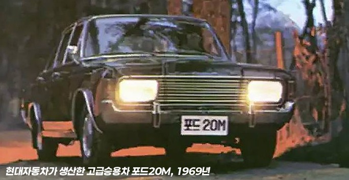 현대자동차는 이외에도 독일 포드(Ford Germany)와 기술제휴 계약을 통해 1969년 5월부터 1973년 6월까지 포드 20M승용차를 생산합니다. 원형은 P7 타우누스(Taunus)라는 이름의 V형 6기통 2,000cc 엔진을 탑재한 승용차입니다.