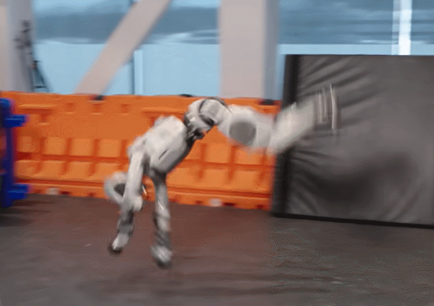 7일 공개된 영상에서 보스턴 다이내믹스의 휴머노이드 로봇 아틀라스가 옆돌기, 백텀블링 등을 하고 있다. 스스로 도움닫기를 한 후(왼쪽 위 사진) 두 손을 사용해 옆돌기를 성공시키거나(오른쪽 위 사진), 공중 백텀블링을 성공한 뒤(왼쪽 아래 사진) 안정적으로 착지하는 모습(오른쪽 아래 사진) 등이 공개됐다. 보스턴 다이내믹스 제공7일 공개된 영상에서 보스턴 다이내믹스의 휴머노이드 로봇 아틀라스가 옆돌기, 백텀블링 등을 하고 있다. 스스로 도움닫기를 한 후(왼쪽 위 사진) 두 손을 사용해 옆돌기를 성공시키거나(오른쪽 위 사진), 공중 백텀블링을 성공한 뒤(왼쪽 아래 사진) 안정적으로 착지하는 모습(오른쪽 아래 사진) 등이 공개됐다. 보스턴 다이내믹스 제공