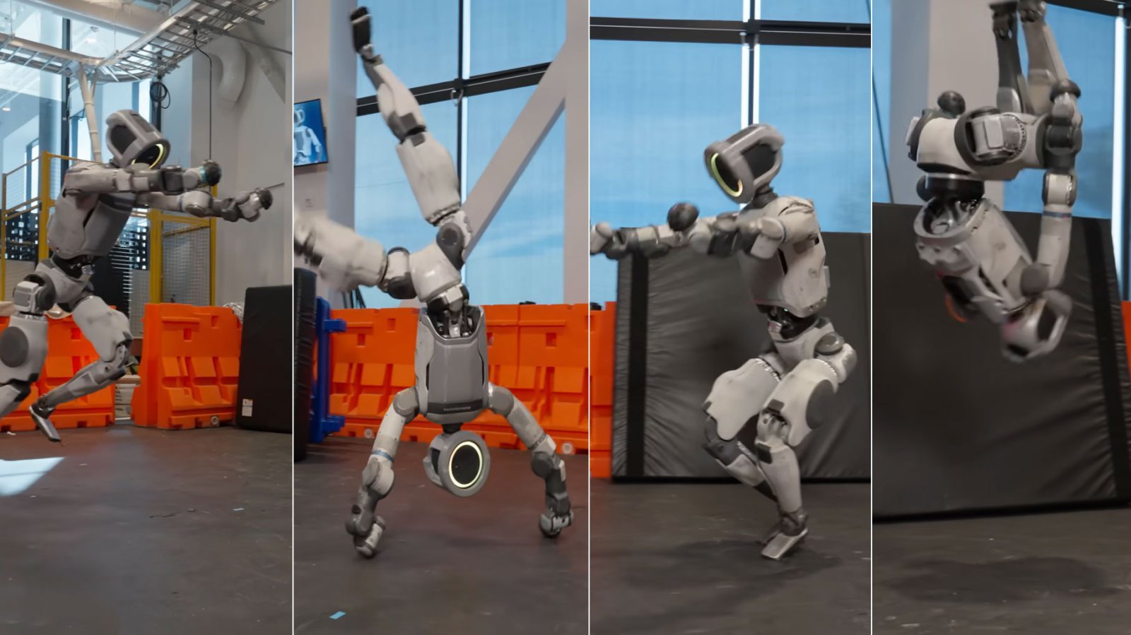 아틀라스는 영상에서 숙련된 체조 선수처럼 옆돌기와 백 텀블링을 잇달아 수행한 뒤 두 발로 한 번의 반동도 없이 착지하는 모습을 선보였다. 도움닫기를 하는 순간과 옆돌기 직전 두 다리를 순서대로 강하게 땅에 디뎌 탄력을 이용하는 모습, 백 텀블링 직전 발끝을 이용해 공중에 도약하는 모습 등이 사람의 운동 동작과 거의 차이가 없었다.