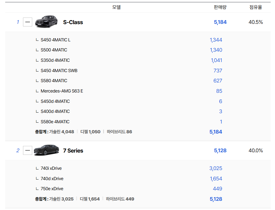지난 2025년 판매 데이터를 살펴보면 BMW 7시리즈가 S클래스의 턱밑까지 추격하거나 특정 분기에는 추월하는 기현상이 발생했습니다. 이는 단순히 디자인의 호불호를 넘어 리스 시장의 프로모션 격차가 만든 결과물입니다.