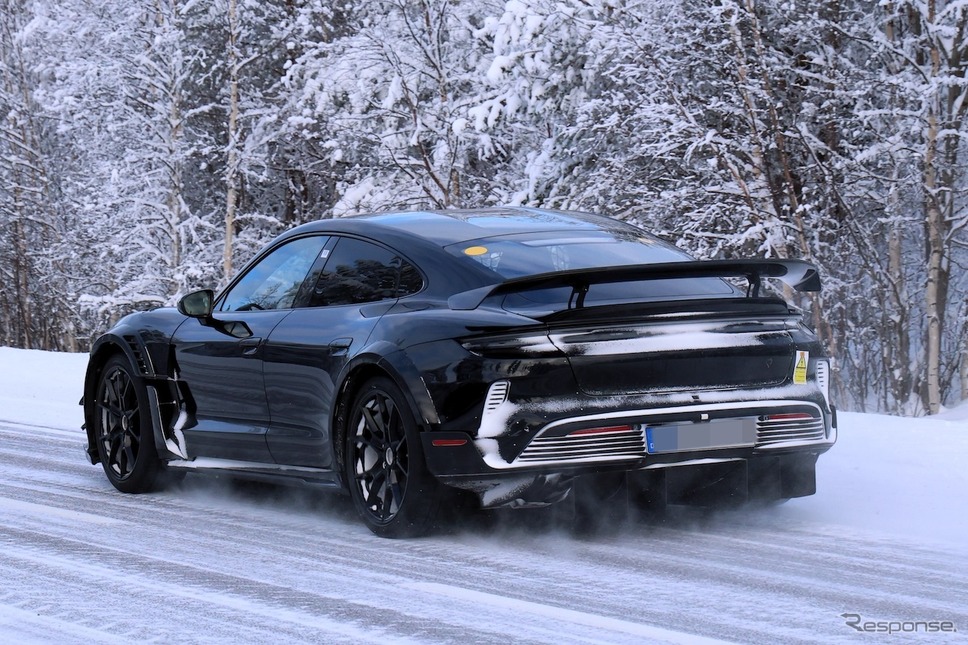스웨덴 북부에서 포착된 최신 스파이샷은, 뉘르부르크링에서 새로운 랩 레코드에 도전하기 앞서 적용된 새로운 에어로 파츠를 드러낸다. 사진만 봐도, 이 차가 포르쉐 전동 4도어 쿠페 역사상 가장 와일드한 버전이라는 사실이 명확하다.