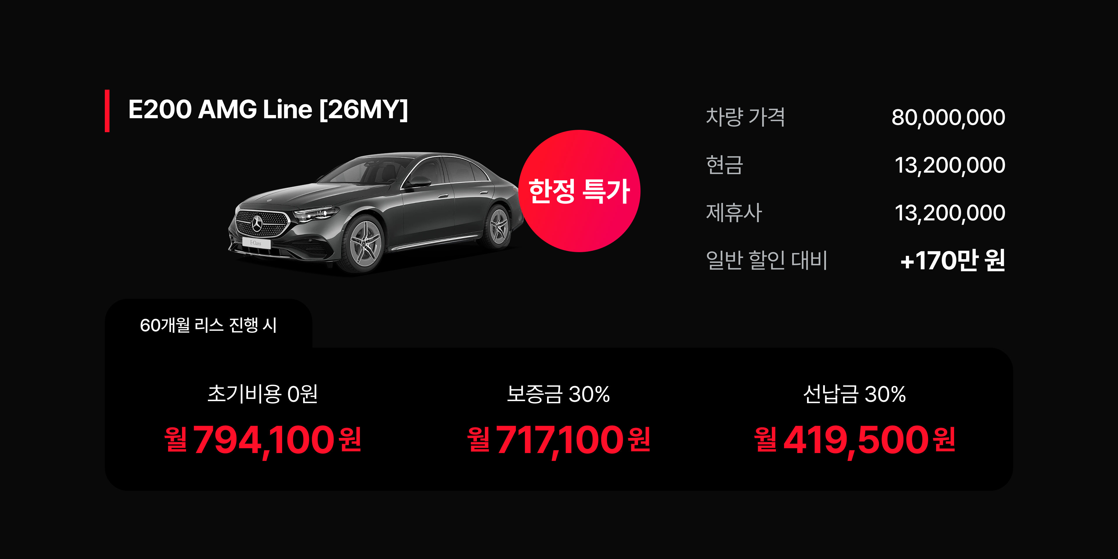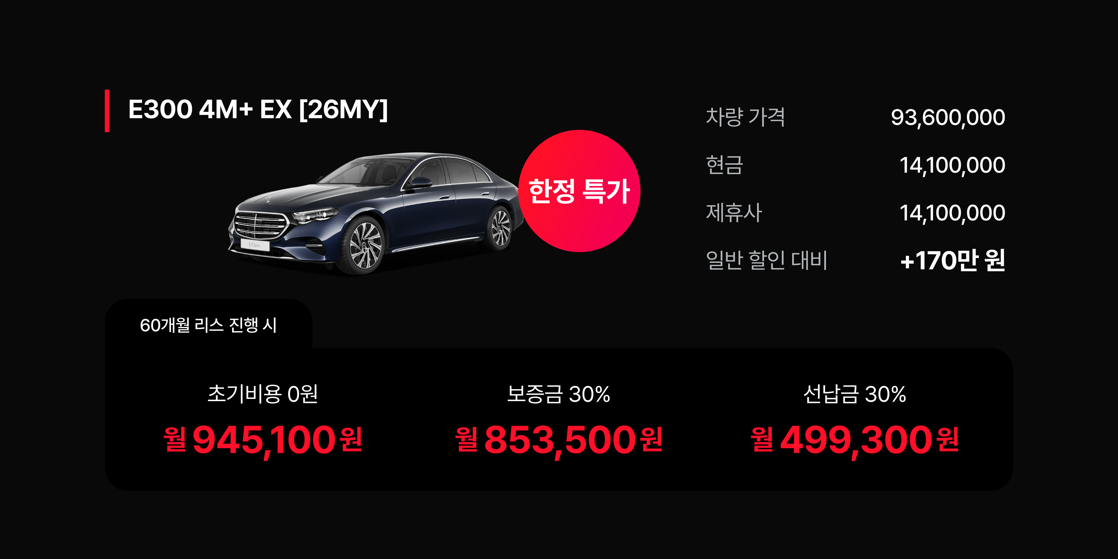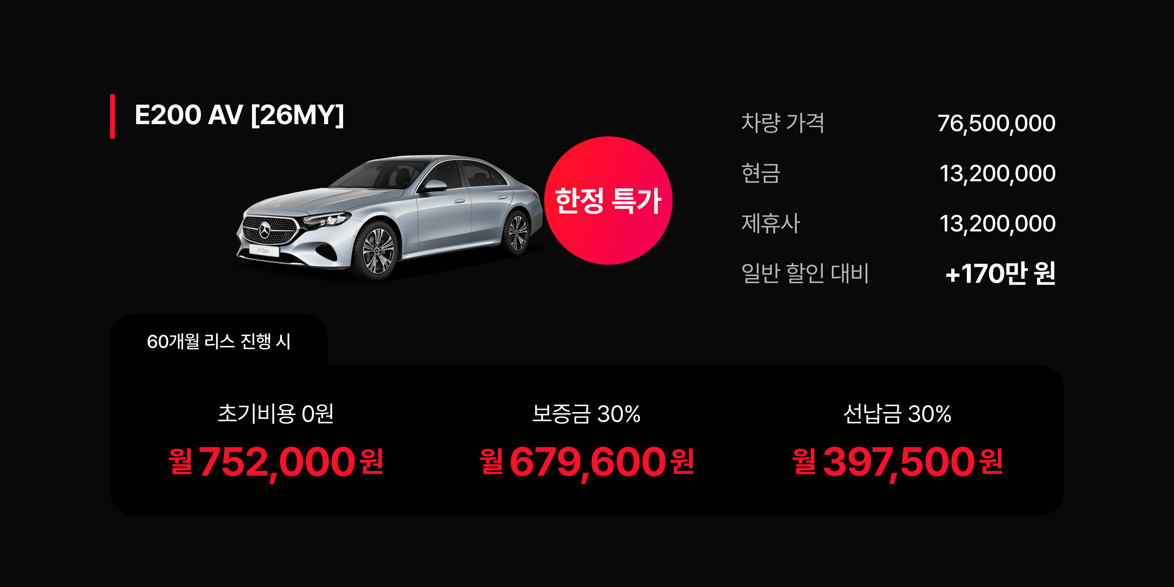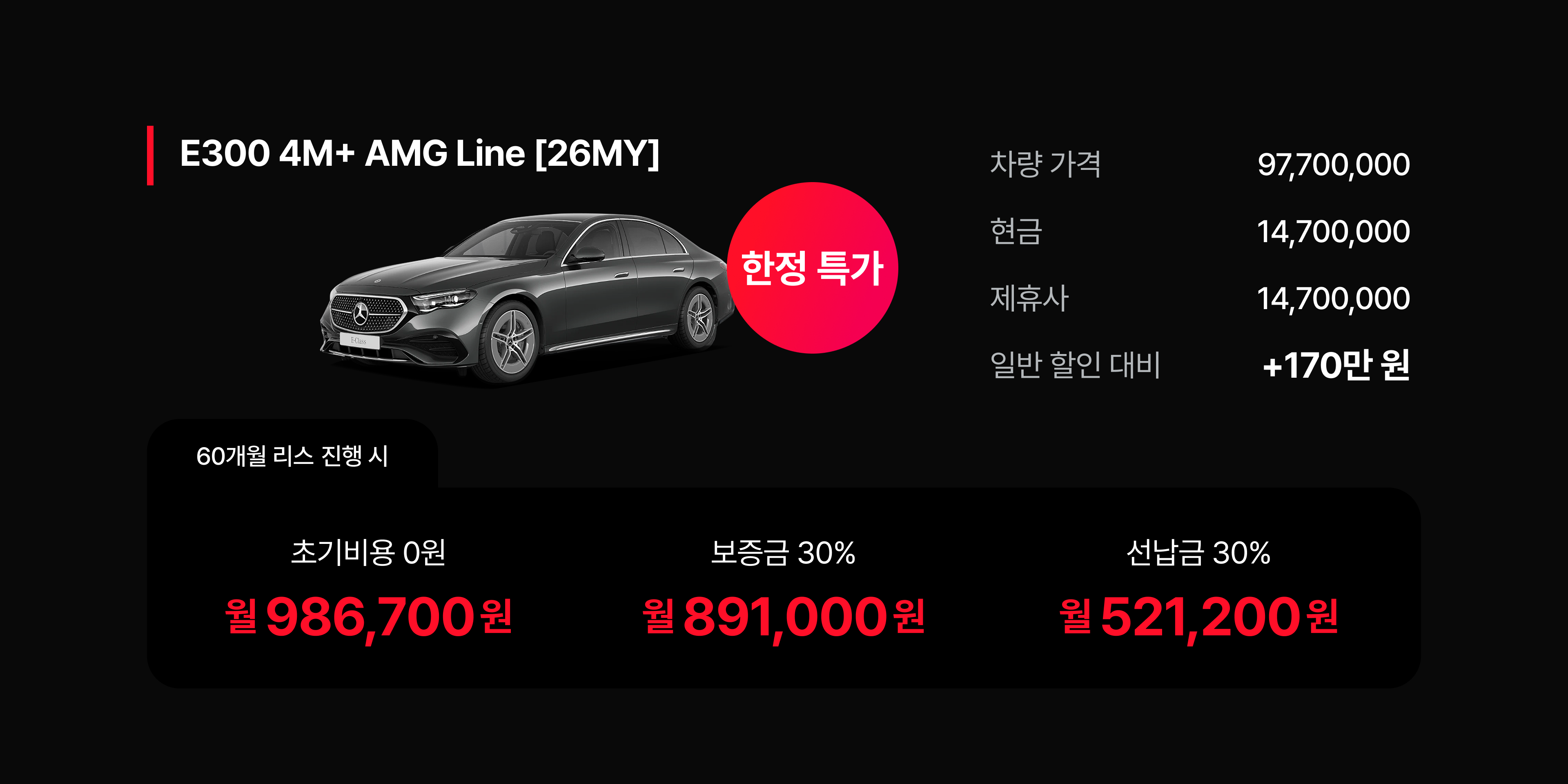 벤츠 E클래스 및 벤츠 GLC 라인업은 일반 할인 대비 1,600,000원 이상의 제휴사 추가 혜택을 통해 실구매가 경쟁력을 확보했다.