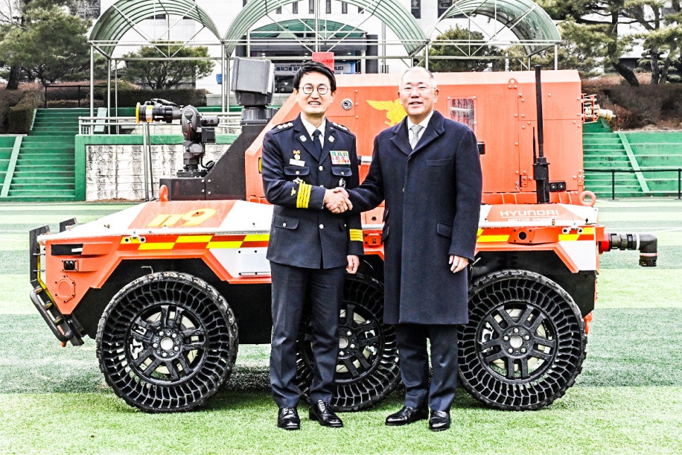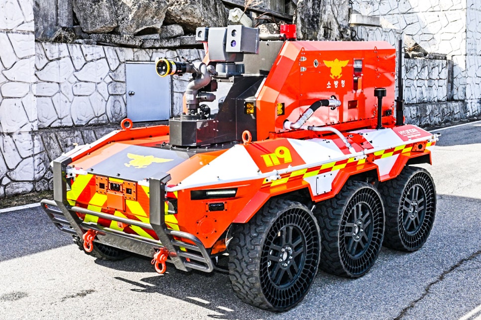 현대자동차그룹이 화재 현장에서 소방관의 위험 노출을 줄이기 위해 개발한 무인소방로봇 4대를 대한민국 소방청에 기증했다.