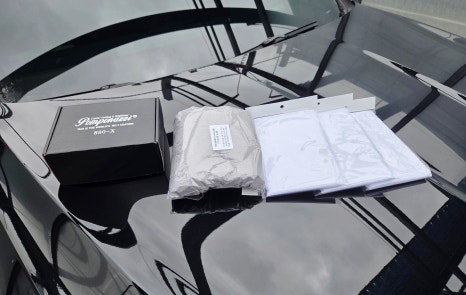 기본 구성품을 보면 폼포나치 880-X 유리막 코팅제 1병, 경화제, 사용 설명서, 사각 어플리케이터, 스웨이드천 4매, 속캡 제거용 드라이버 1개, 버핑타월 3매로 구성되어 있고. 저는 여기에 더해 폼포나치 드라잉타월도 추가로 가져왔습니다. 구성도 좋고, 패키징도 좋아서 신차나 새 차 선물용으로도 좋을 것 같습니다.