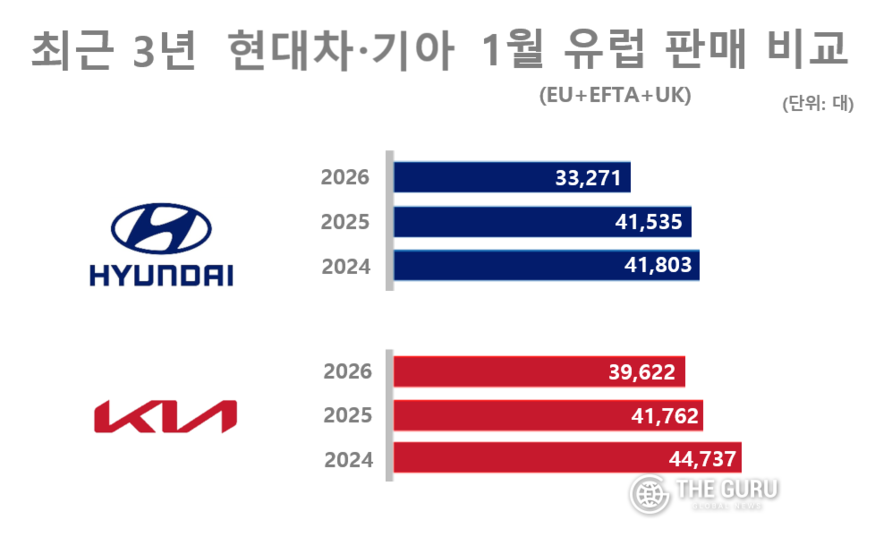 특히 2024년 현대차와 기아의 판매량은 각각 4만1803대, 4만4737대로 최근 3년 연속 감소세를 이어가고 있어 유럽 시장 내 입지 축소가 우려된다.